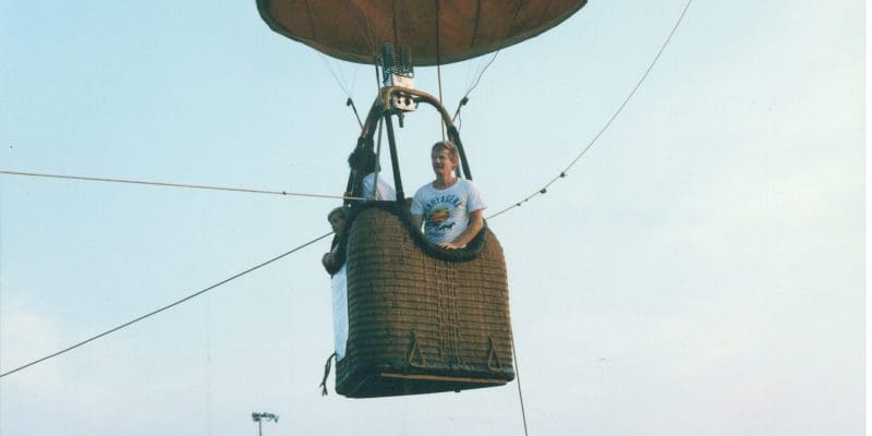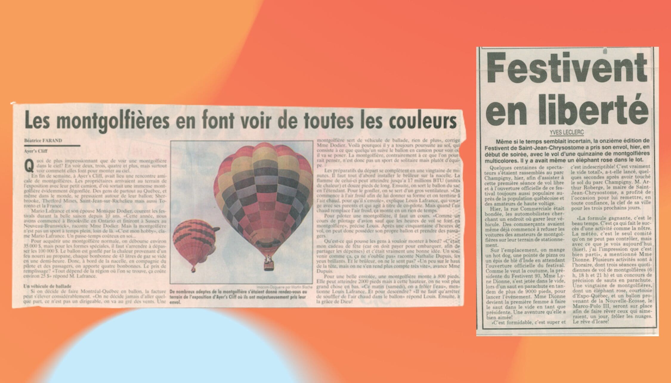 André Boucher, un pilote de montgolfière qui cherchait un endroit pour voler avec des amis aérostiers (oui oui, c’est le métier de pilote de montgolfière) tomba sous le charme et l’étendue du terrain que lui offrait le Parc Champigny. Après quelques démarches pour faire valoir leur petit projet, la ville accepte de leur prêter le terrain le temps d’une fin de semaine. Bingo!