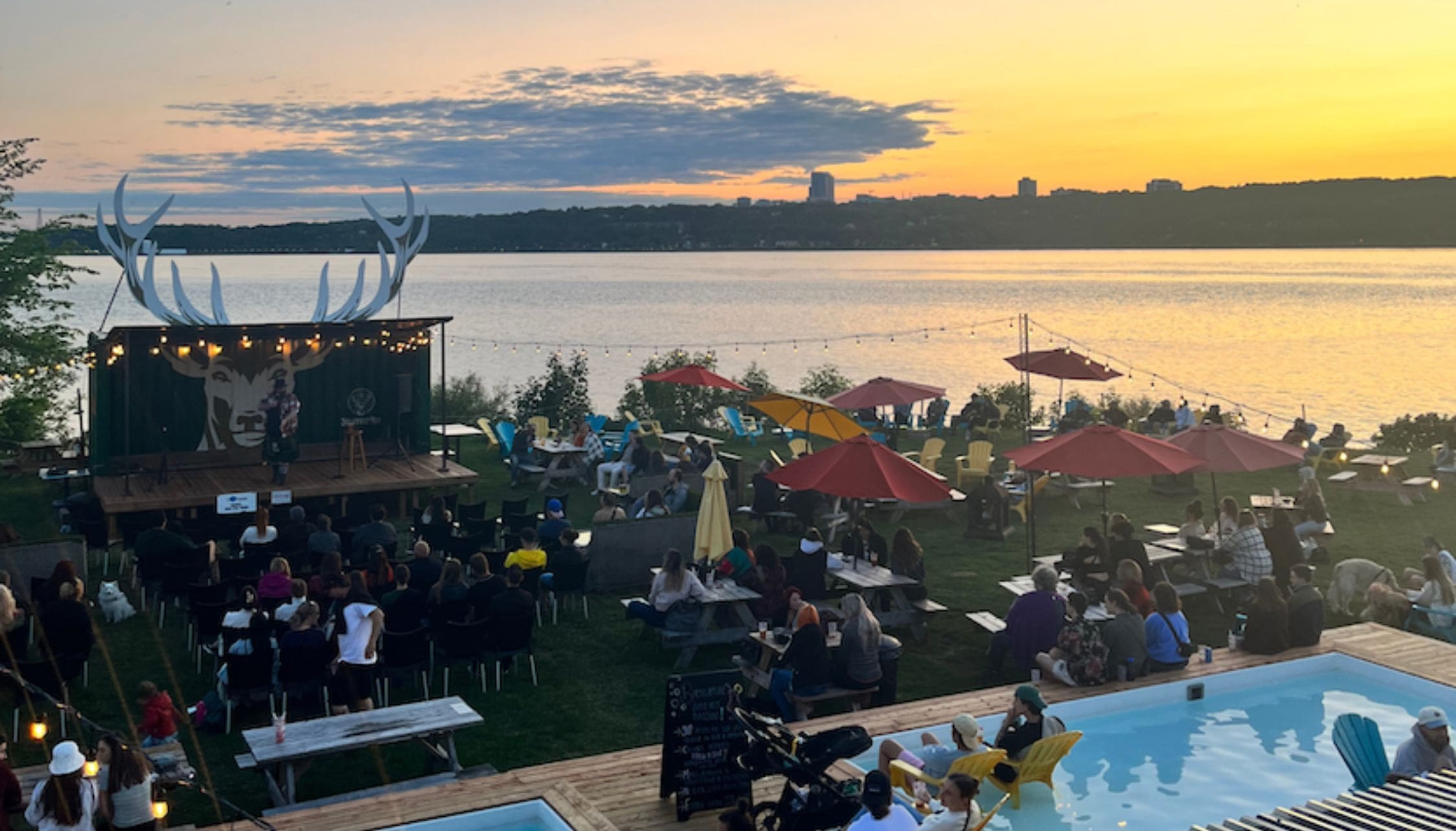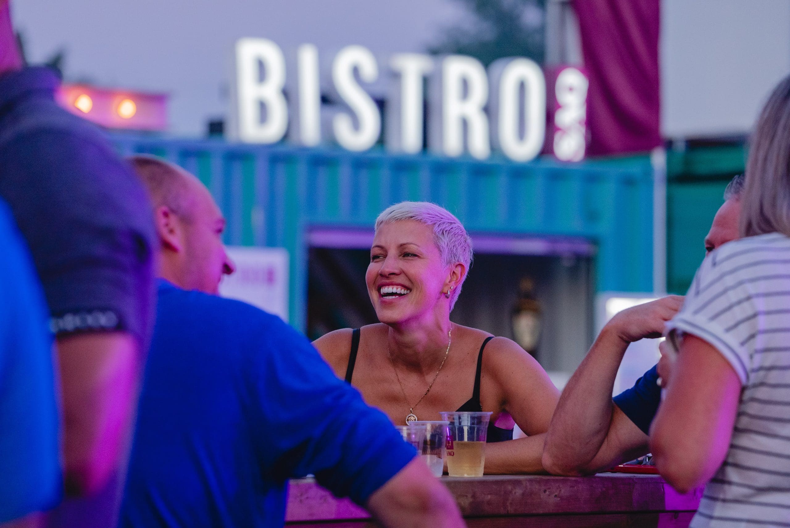 Profite gratuitement de la terrasse estivale & festive de la Cour arrière de Lévis avec scène musicale, produits d’ici, foodtruck gourmand, bar 2 étages, vue imprenable sur Québec et volleyball de plage en tout temps.